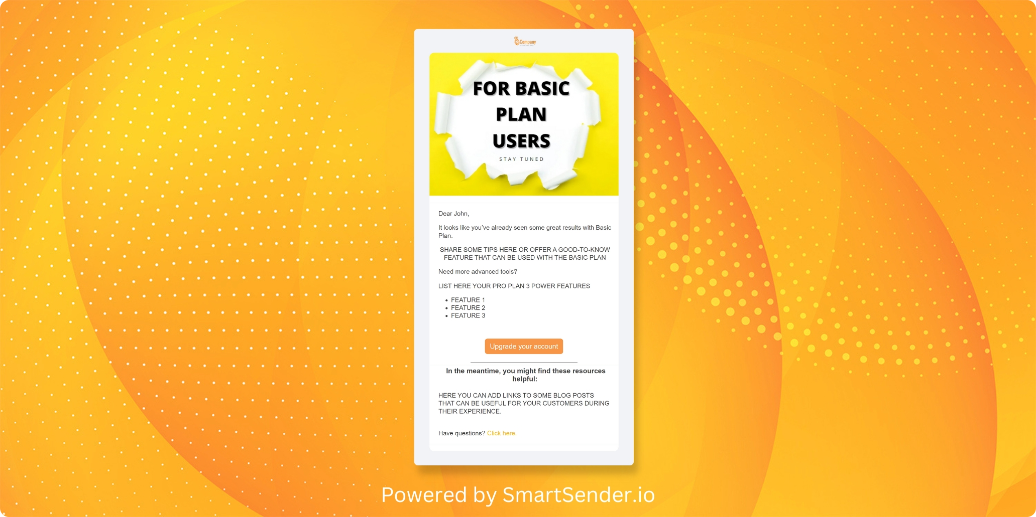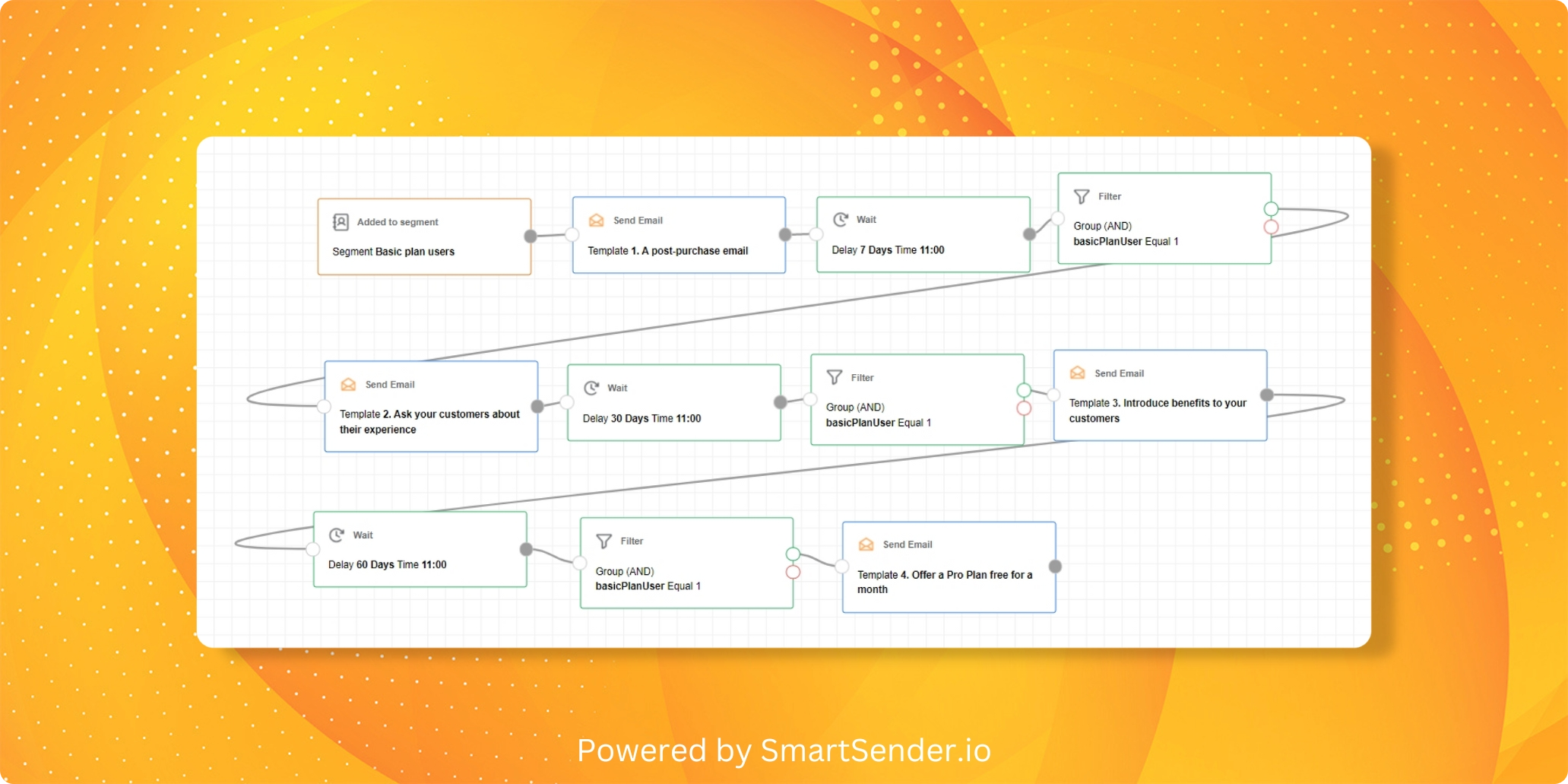 After another 60 days, the check-up process will be repeated. Finally, if the contact is still in the segment, the last email will be sent to your customer with the Pro Plan upgrade offer.