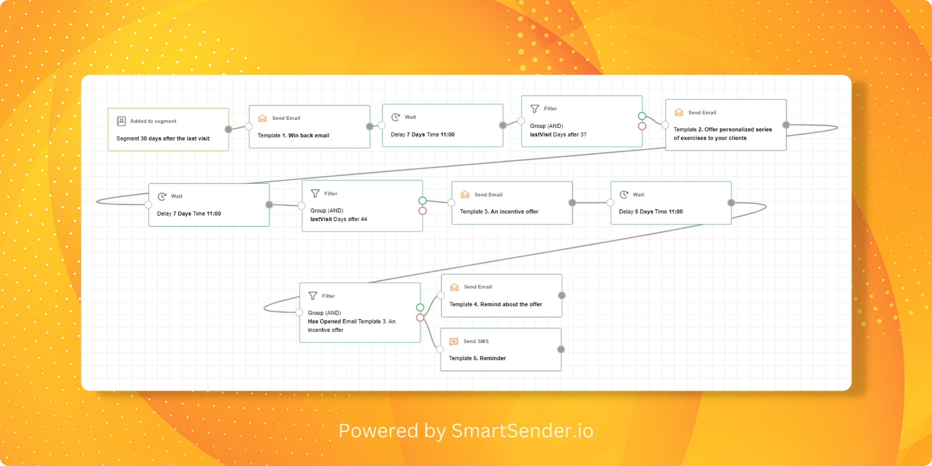 Then the platform will wait five days, and if no opens are made, the contact will get an email and SMS simultaneously as a reminder about the discount offer.
