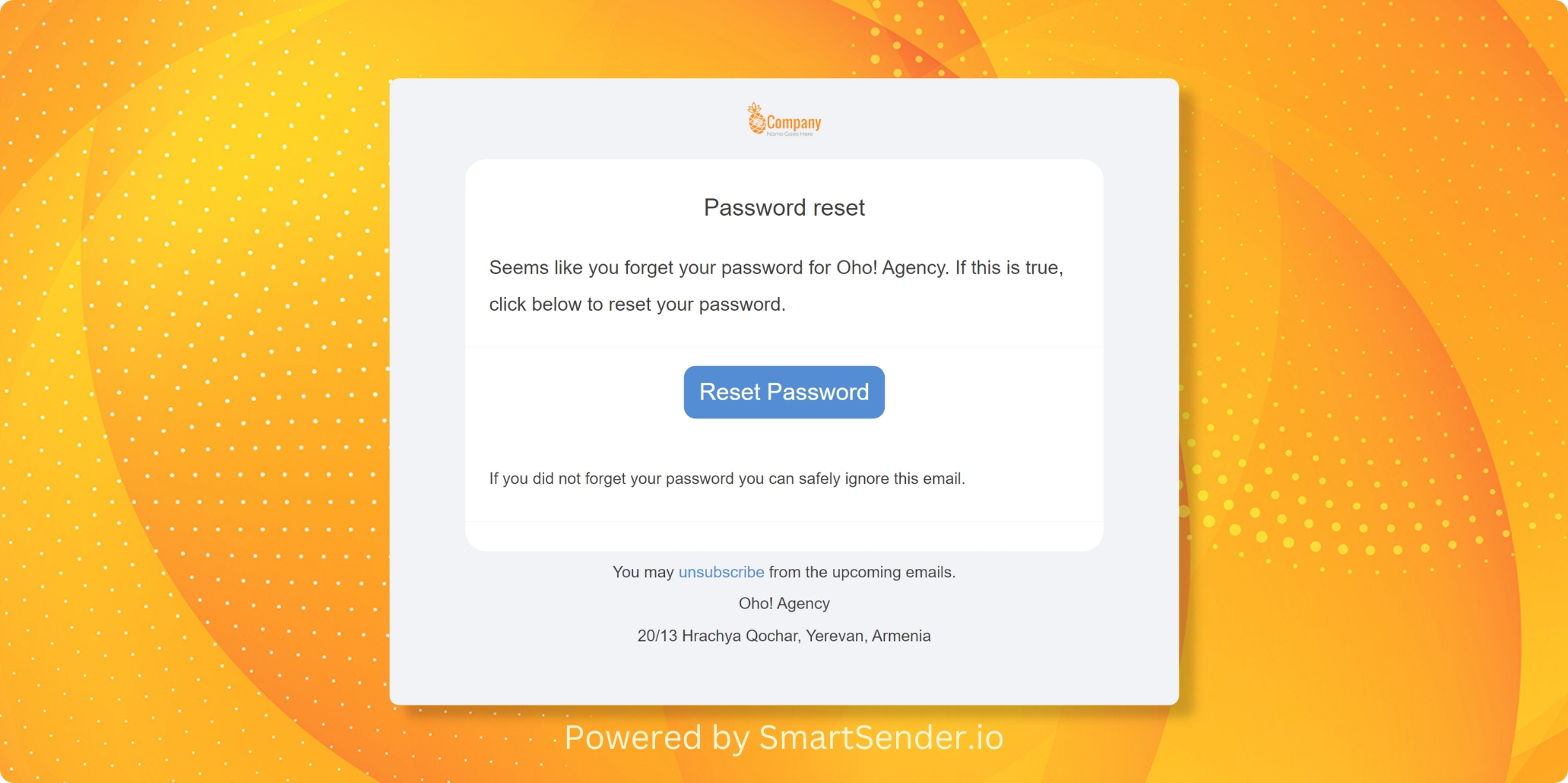 Immediately after that, the email template will be sent. The main goal of this email is to help your users securely re-establish access to their accounts. The email includes a link to the service's password reset web page, where the recipient can reset their information.