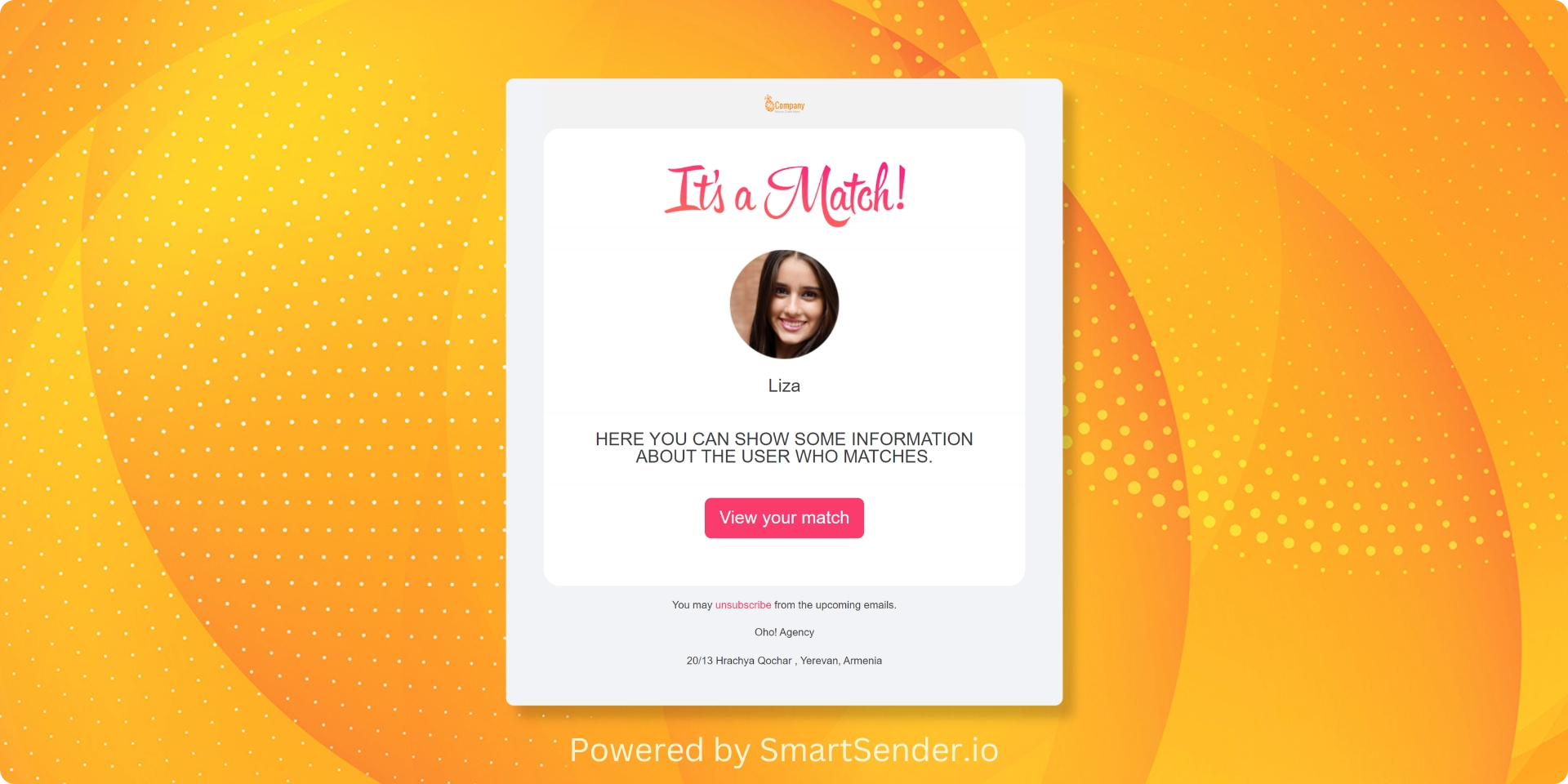 Dating apps and websites are now among the most popular online services. Every day, more and more people join to find a date. The match can happen randomly or due to the mutual interests of two people. You can also send match emails to win back your passive contacts. In this way, you'll remind them about your app and make them curious about who they have a match with.